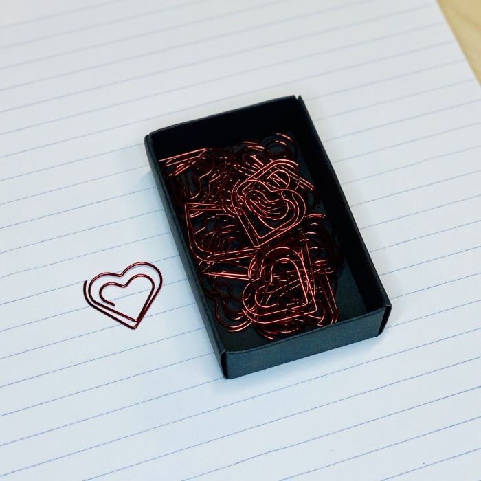 Metalclip formet som et hjerte - flot alternativ til almindelig papirclips - og meget mere romantisk.