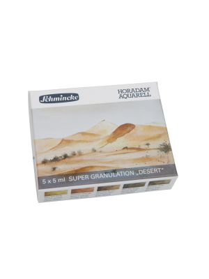 Æske med de fem farver i Desert-serien af supergranulerende farver.