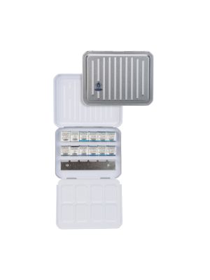 Metalæske med 12 halvpans akvarelfarver specielt velegnet til maling af hav og himmel.