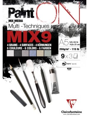 Mixed Media blok med 6 forskellige farver papir. Den hvide kommer i fire forskellige overflade. Tre ark af hver.