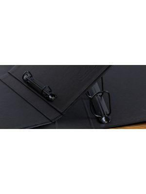 Ringbind i genbrugskarton med slidstærk buckrambetræk med lærredspræg.