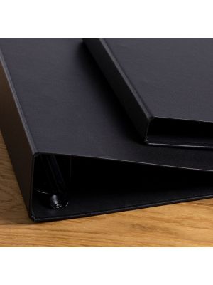 Ringbind i genbrugskarton med slidstærk buckrambetræk med lærredspræg.
