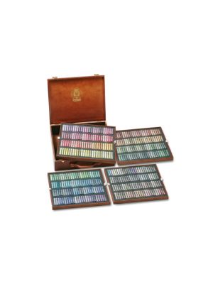 Sæt med 200 bløde tørpasteller i trææske.