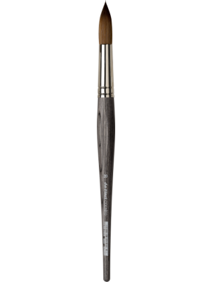 Spids rund, syntetisk pensel. Hårlængde: 40,0mm. Diameter på bredeste led: 13,0mm. Total længde: 275mm