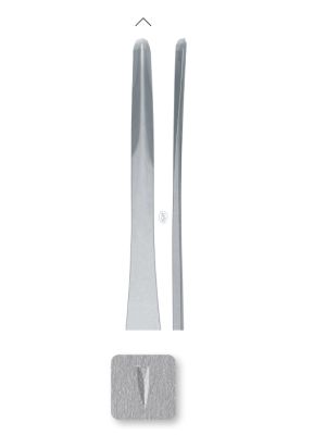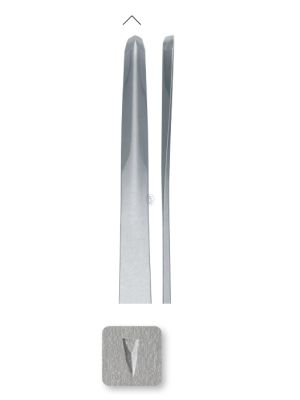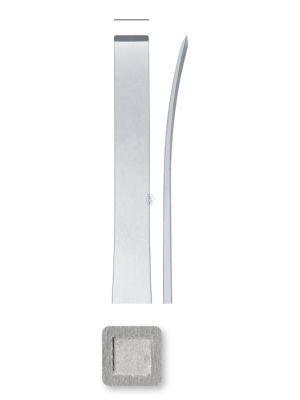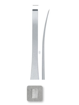 Linoleumskniv med tempereret stålblad. Er let bøjet, hvilket gør det muligt at arbejde mere præcist. Bladet er slebet i hånden. Håndtaget gør den let at bruge og giver mulighed for at skære hårdere ned.