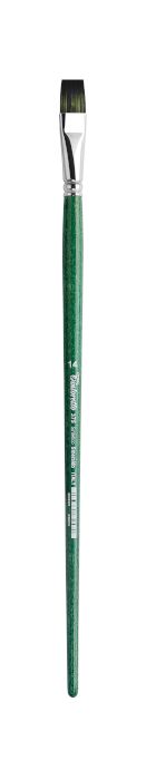 Flad pensel med langt skaft og syntetiske hår til olie- og akrylmaling. Elastiske hår med en god stivhed, der er særdeles velegnet til tykke lag maling på grove lærreder og jutestof og lignende - men samtidigt er spidsen også meget fin, så detaljerne bliver helt perfekte.