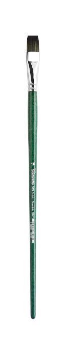 Flad pensel med langt skaft og syntetiske hår til olie- og akrylmaling. Elastiske hår med en god stivhed, der er særdeles velegnet til tykke lag maling på grove lærreder og jutestof og lignende - men samtidigt er spidsen også meget fin, så detaljerne bliver helt perfekte.