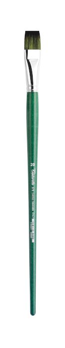 Flad pensel med langt skaft og syntetiske hår til olie- og akrylmaling. Elastiske hår med en god stivhed, der er særdeles velegnet til tykke lag maling på grove lærreder og jutestof og lignende - men samtidigt er spidsen også meget fin, så detaljerne bliver helt perfekte.