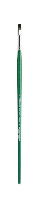 Flad pensel med langt skaft og syntetiske hår til olie- og akrylmaling. Elastiske hår med en god stivhed, der er særdeles velegnet til tykke lag maling på grove lærreder og jutestof og lignende - men samtidigt er spidsen også meget fin, så detaljerne bliver helt perfekte.