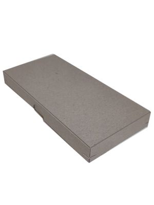 Læs mereFladhæftet æske i grå karton med løst låg.