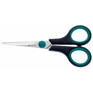 Saks med ergonomisk håndtag med skridsikker belægning, der gør saksen nem at holde på.