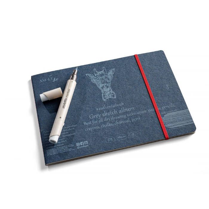 Hæfte med gråt papir med et indhold af bomuld. Bomuldsfibrene giver lidt ruhed til overfladen og cellulosefibre giver fylde og styrket. Velegnet til alle tørtekniker (kul, blyant, tørpastel, rødkridt, hvidkridt og lignende. Papiret er syrefrit. Syet i ryggen og har lukkeelastik. Formatet giver mulighed for panoramategning.