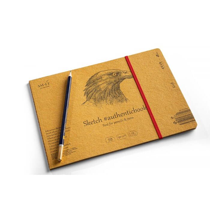 Hæfte med stribet, brun kraftpapir. Velegnet til blyant, penne, kridt, kul og farvepridt/vokspasteller. Papiret er syrefrit, pH-neutralt og FSC-certificeret. Syet i ryggen og har lukkeelastik. Formatet giver mulighed for panoramategning.