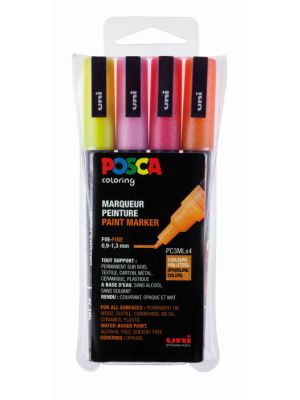 Sæt med 4 neon-farver i Posca PC-5M (1,8-2,5mm rund spids)