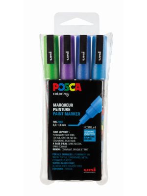 Sæt med 4 kolde farver med glittereffekt i Posca PC-3M (0,9-1,3mm rund spids)