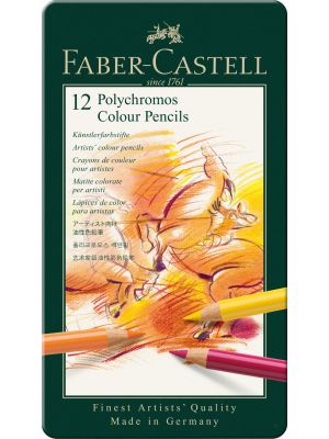 Faber-Castell Polychromos farveblyanter 12 stk. ass. i metalæske, basic farver