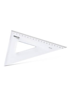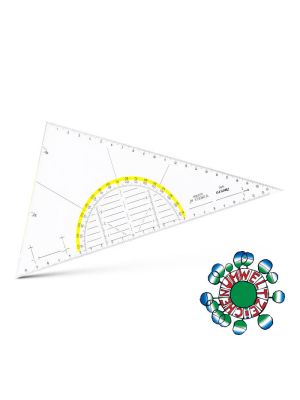 Læs mere60°/30° geometritrekant i plexiglas med fast greb. Dybpræget inddeling og vinkelmål. Markeret vinkel i 45° til let skravering. Facet på millimetermålet.