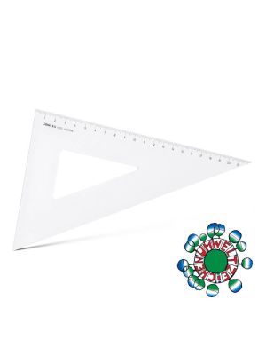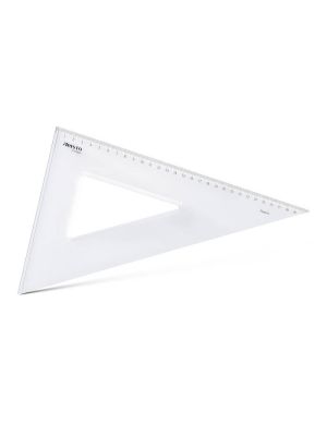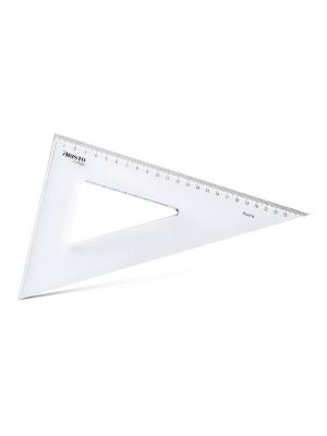 Tegnetrekant af glasklar plexiglas med 60°/30° vinkel. Slidstærk dybpræget millimeterinddeling. Nulpunkt går fra 90° vinkel.