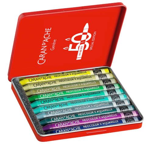 Speciel farvesammensætning i et sæt der er et ud af fem der fejrer 50-års jubilæet for Neocolor II. Dette sæt indeholder følgende farver: 159, 110, 229, 201, 220, 245, 730 og tre farver der kun findes i dette sæt: 154 Skagen Blue, 681 Chrysoprase Green, and 246 Aucuba Green